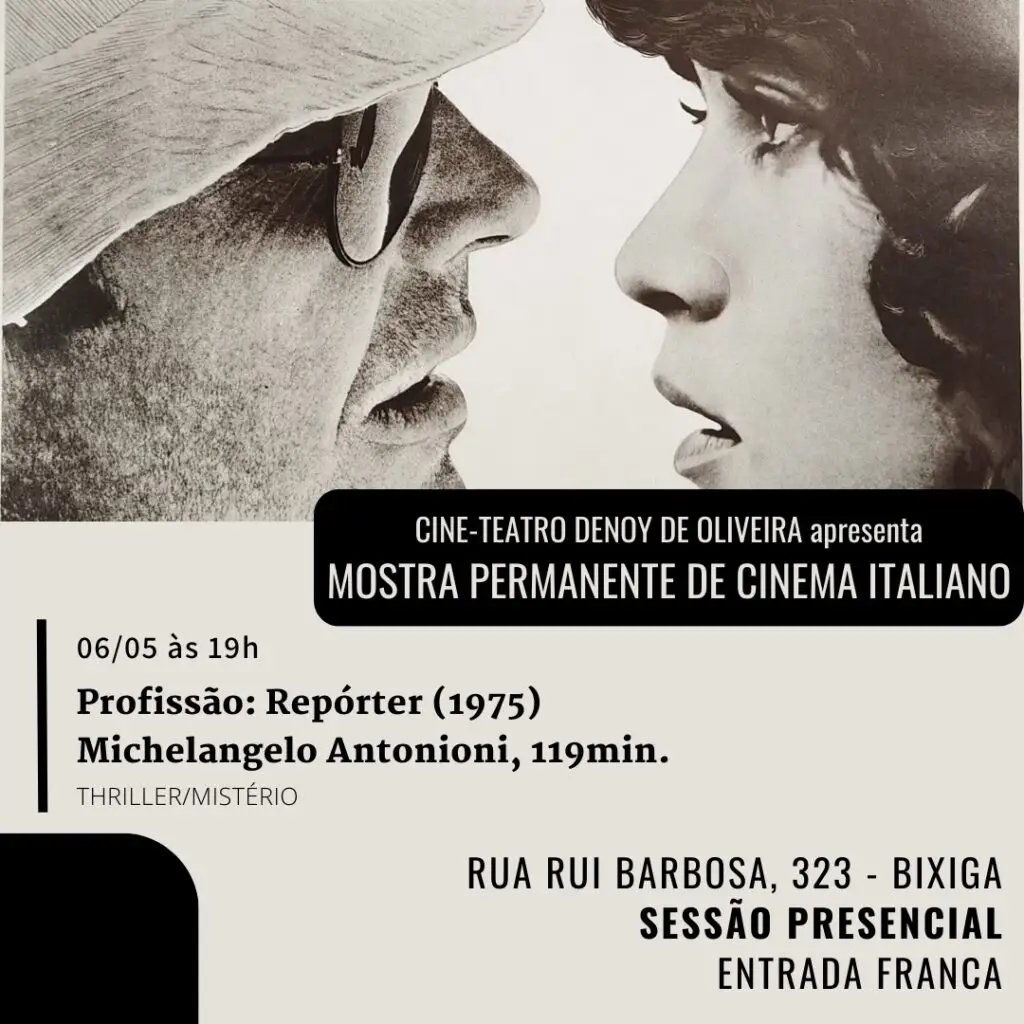 Na próxima segunda (06/05), teremos o último filme do “Ciclo Italianos no Mundo” com “Profissão: Repórter” de Michelangelo Antonioni para a Mostra Permanente de Cinema Italiano!