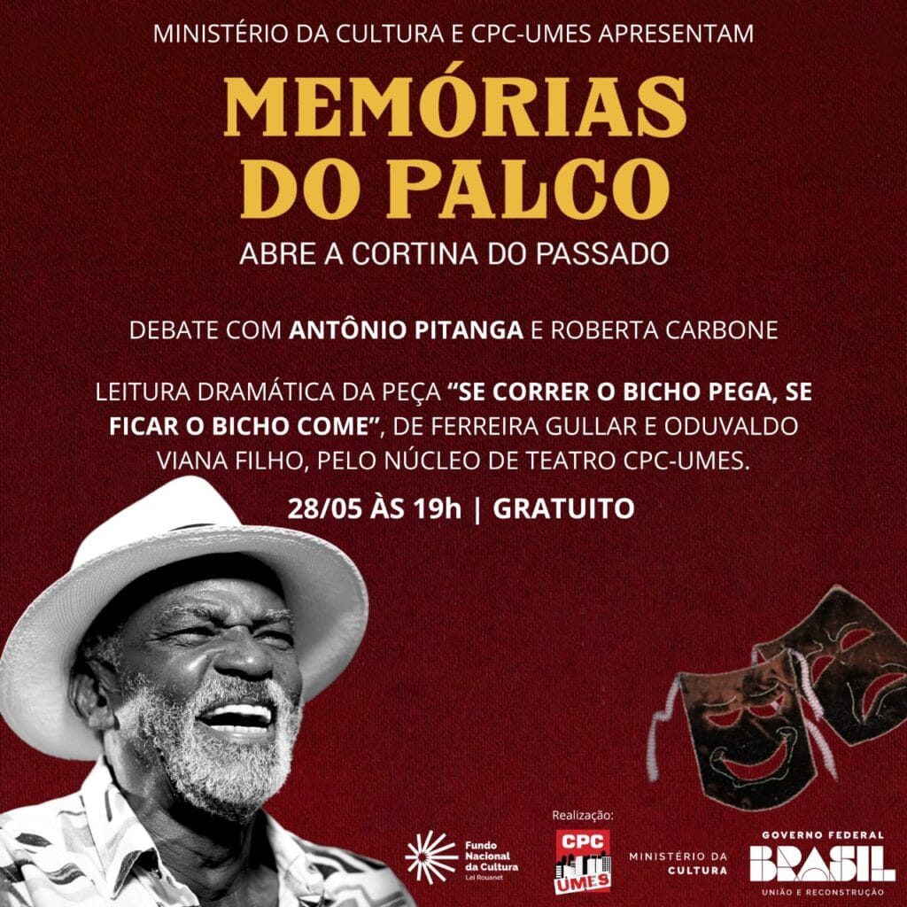 Para complementar o grande espetáculo, o Núcleo de Teatro CPC-UMES fará uma leitura dramática da peça “Se Correr o Bicho Pega, Se Ficar o Bicho Come”, de Ferreira Gullar e Oduvaldo Viana Filho.