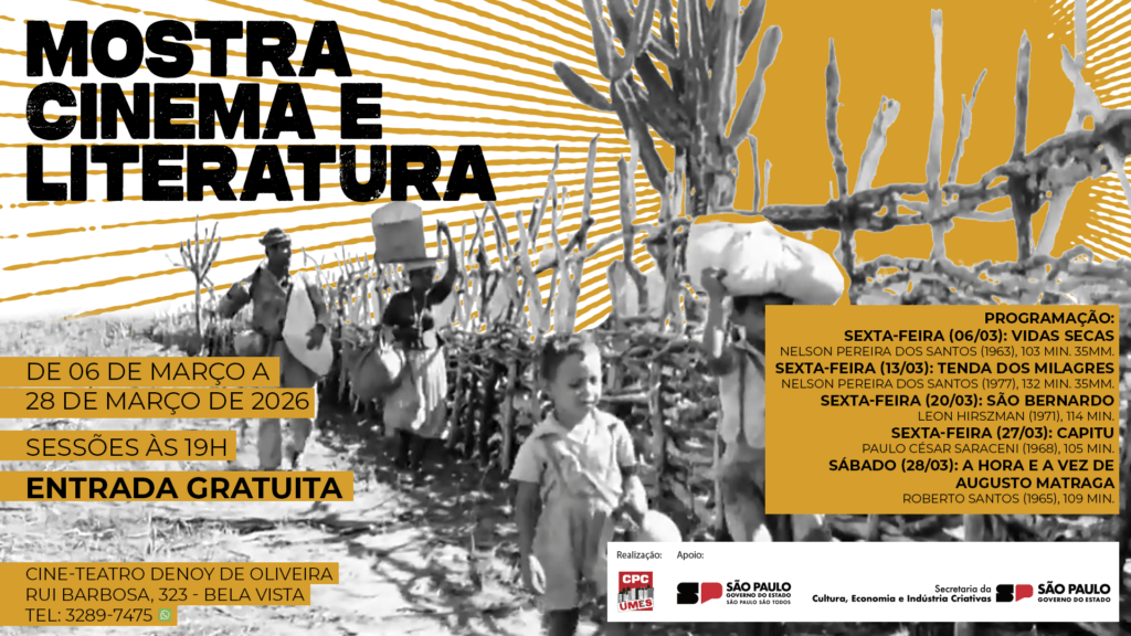 O Centro Popular de Cultura da UMES orgulhosamente apresenta a Mostra “Cinema e Literatura”, uma menção a algumas das grandes obras brasileiras, filmadas e escritas, que fizeram parte da nossa construção como sociedade e nação.
